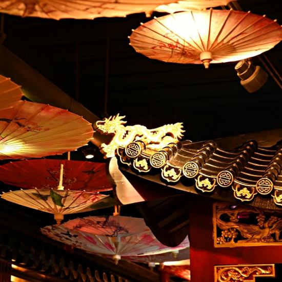 『異国情緒漂う伝統的な装い』四川省成都市の文化が詰まったインテリアに囲まれた空間はまるで中国旅行気分を味わえます!中国の長い歴史を感じるテーブルやインテリアの数々は、中国から取り寄せた職人さんの手作り!大阪の街で歴史を巡る中華の旅を♪