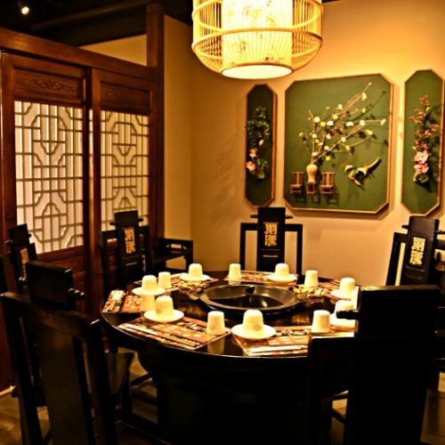 円卓を皆さんで囲んでお食事!これが火鍋の醍醐味です!落ち着いた個室空間はご家族やご宴会に最適です。