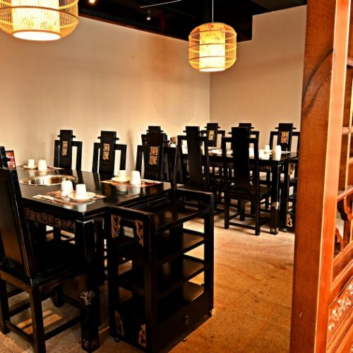 ベンチシートタイプのお席です。2名掛けと4名掛けをご用意しております。半個室風に、仲間内や女子会など少人数でお楽しみいただけます。ゆったりとお寛ぎいただきながら、本格火鍋に舌鼓を打つひと時はクセになります◎